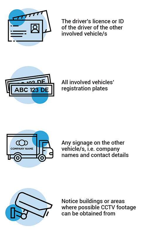Information to be obtained at an accident scene: